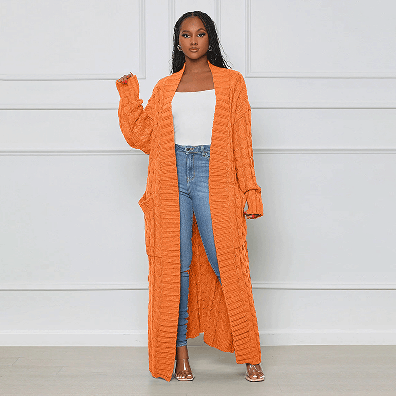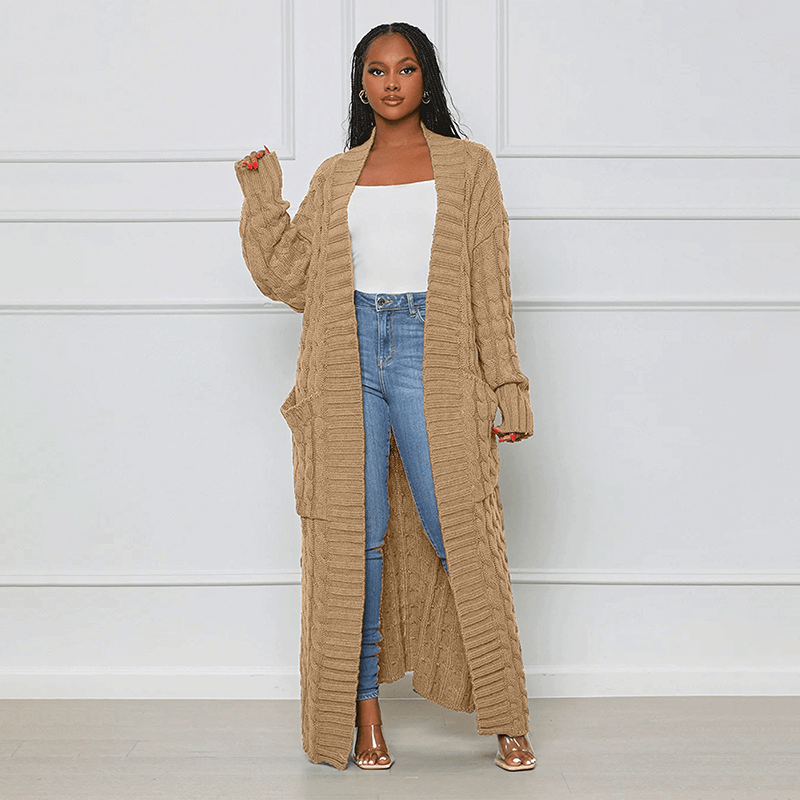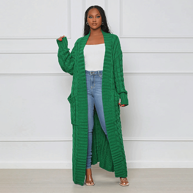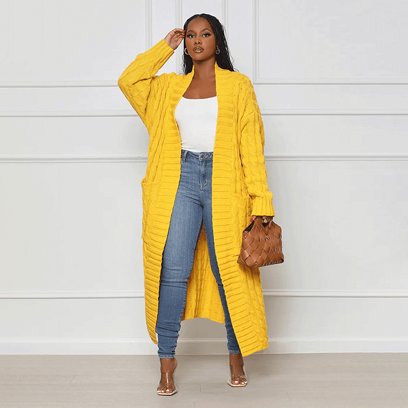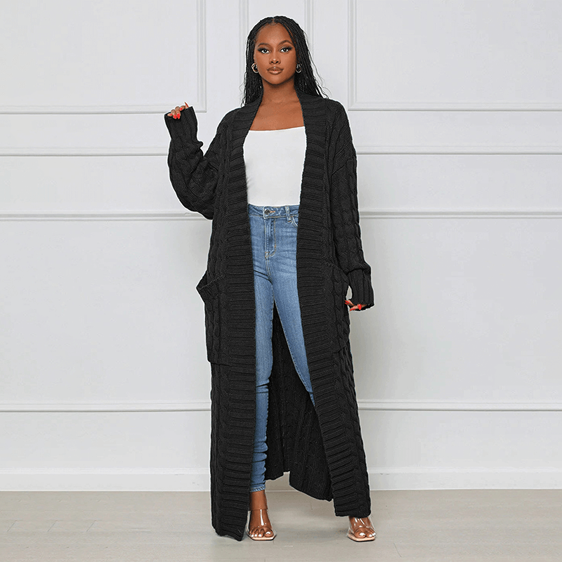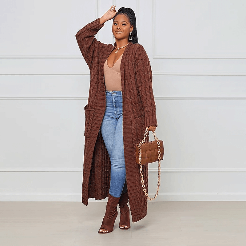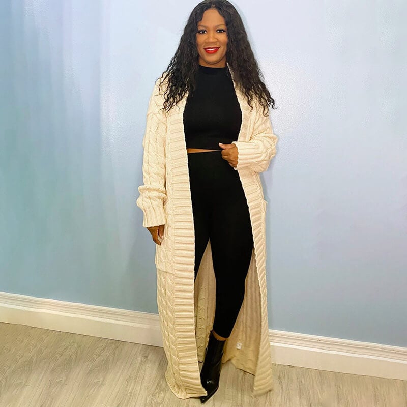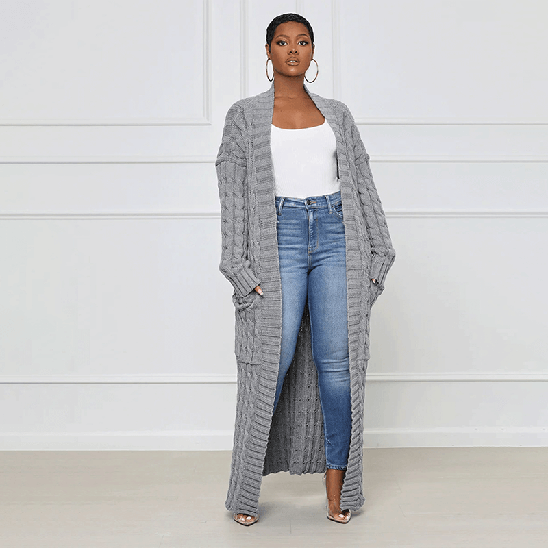 This cable knit cardigan is the perfect transitional piece for wardrobe.This soft and warm duster is the perfect layering piece! Pair with some of your easier outfits for a complete look of the day