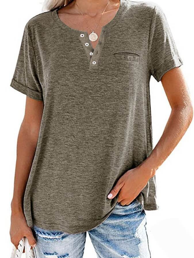 - Feature: Button V Neck Shirts, Short Sleeve Tops, Solid Color Tees, Casual Summer T Shirts, Pocket, Oversize, Loose Fit, Lightweight, Cozy and comfortable, Chic and delightful top for summer.