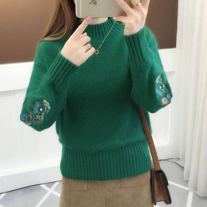 - Package includes:Cashmere Knitted Floral Embroidery Thick Sweater*1PC