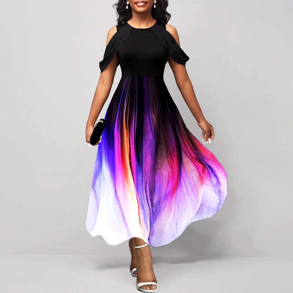 Add a splash of color to your wardrobe with this dress, perfect for wearing to your next special event or night out with its gorgeous color ombre shading.