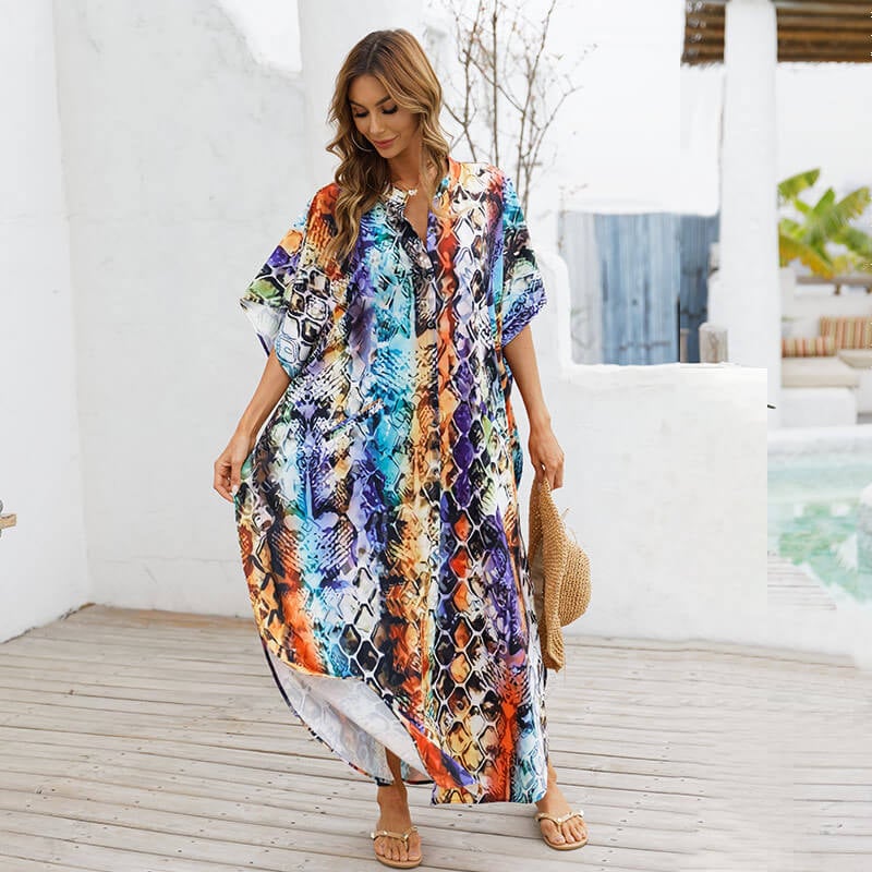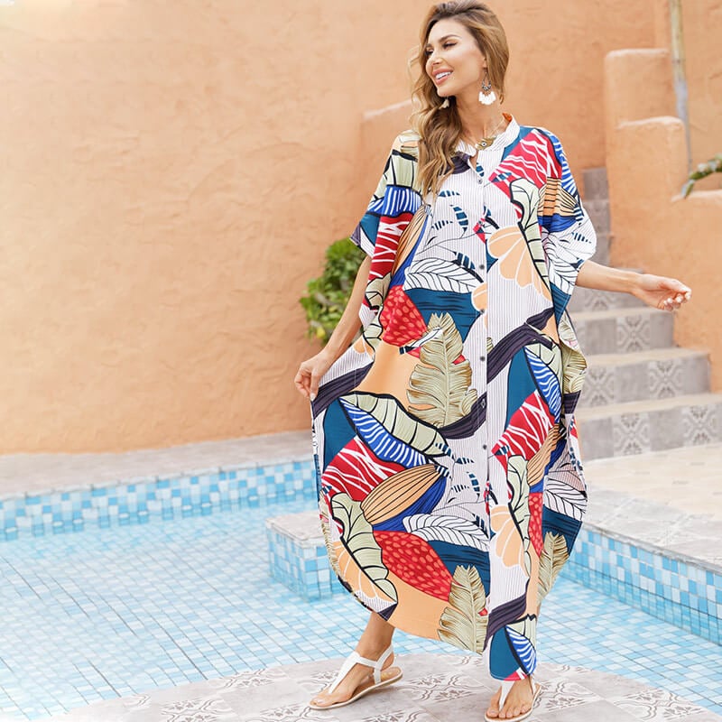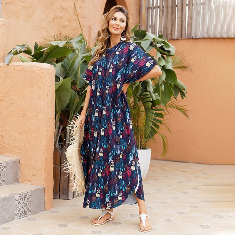 Occasion: Loungewear | Resort Pool Dress | Casual Evening Wear | Maxi Nightwear Kaftan | Vintage Dress