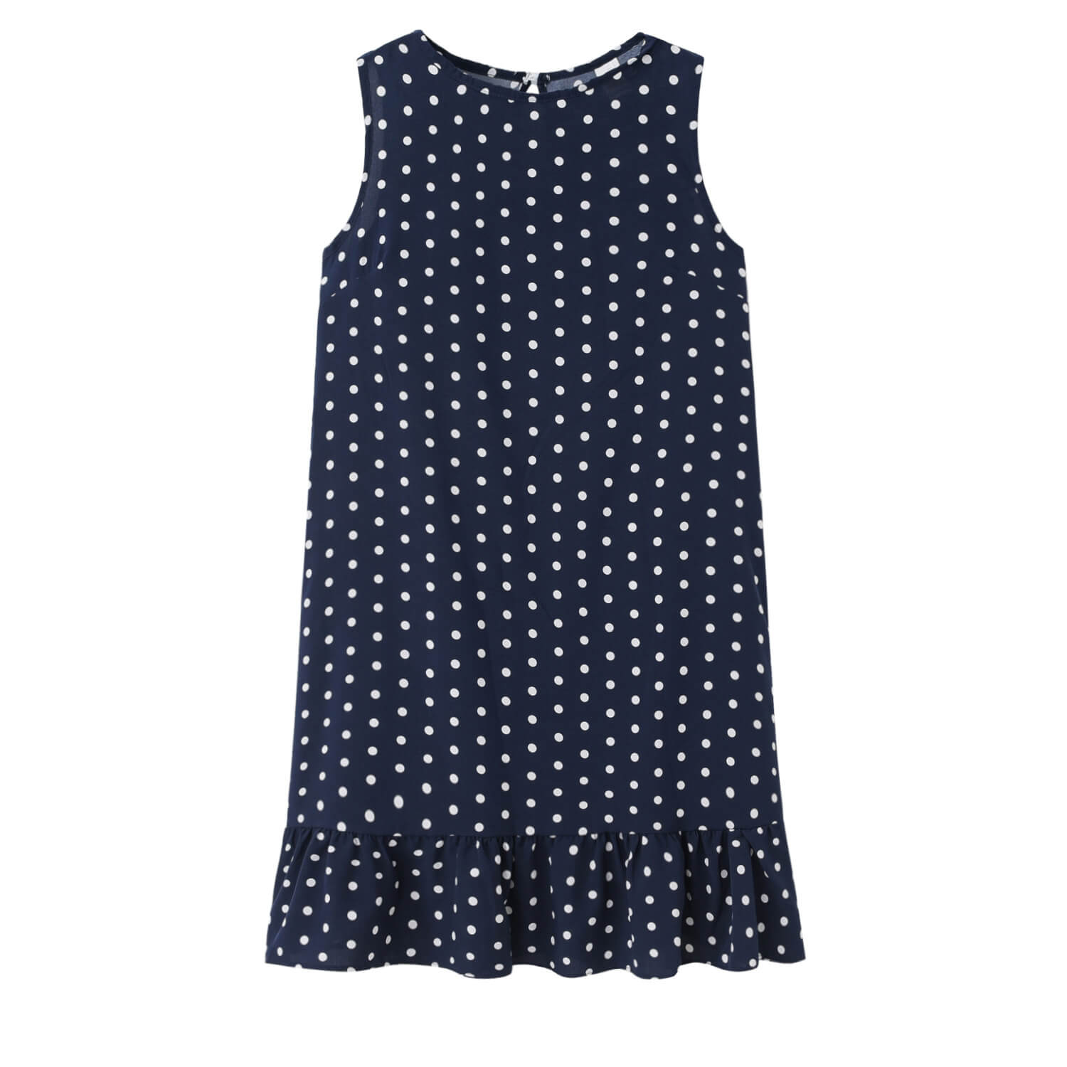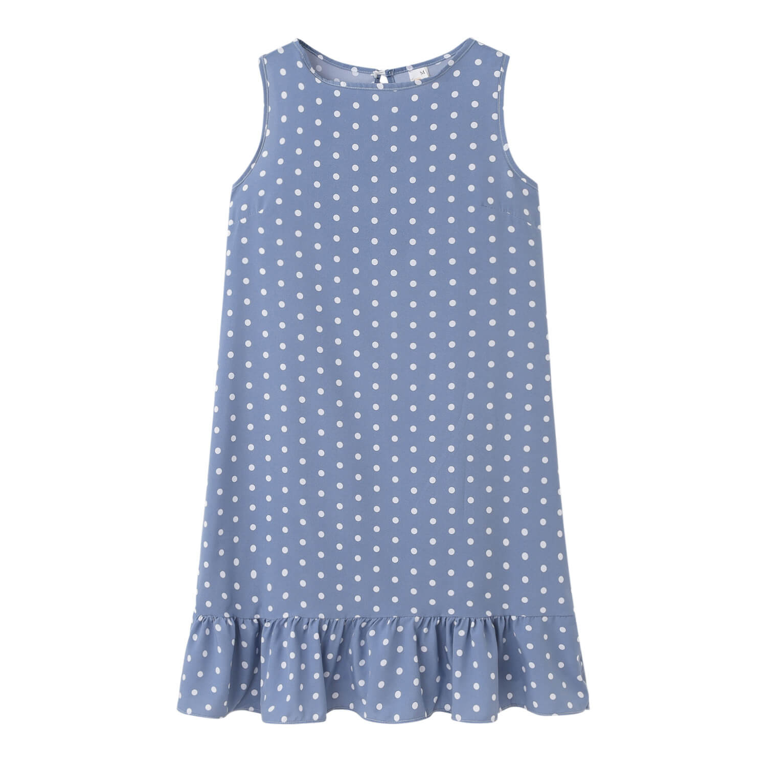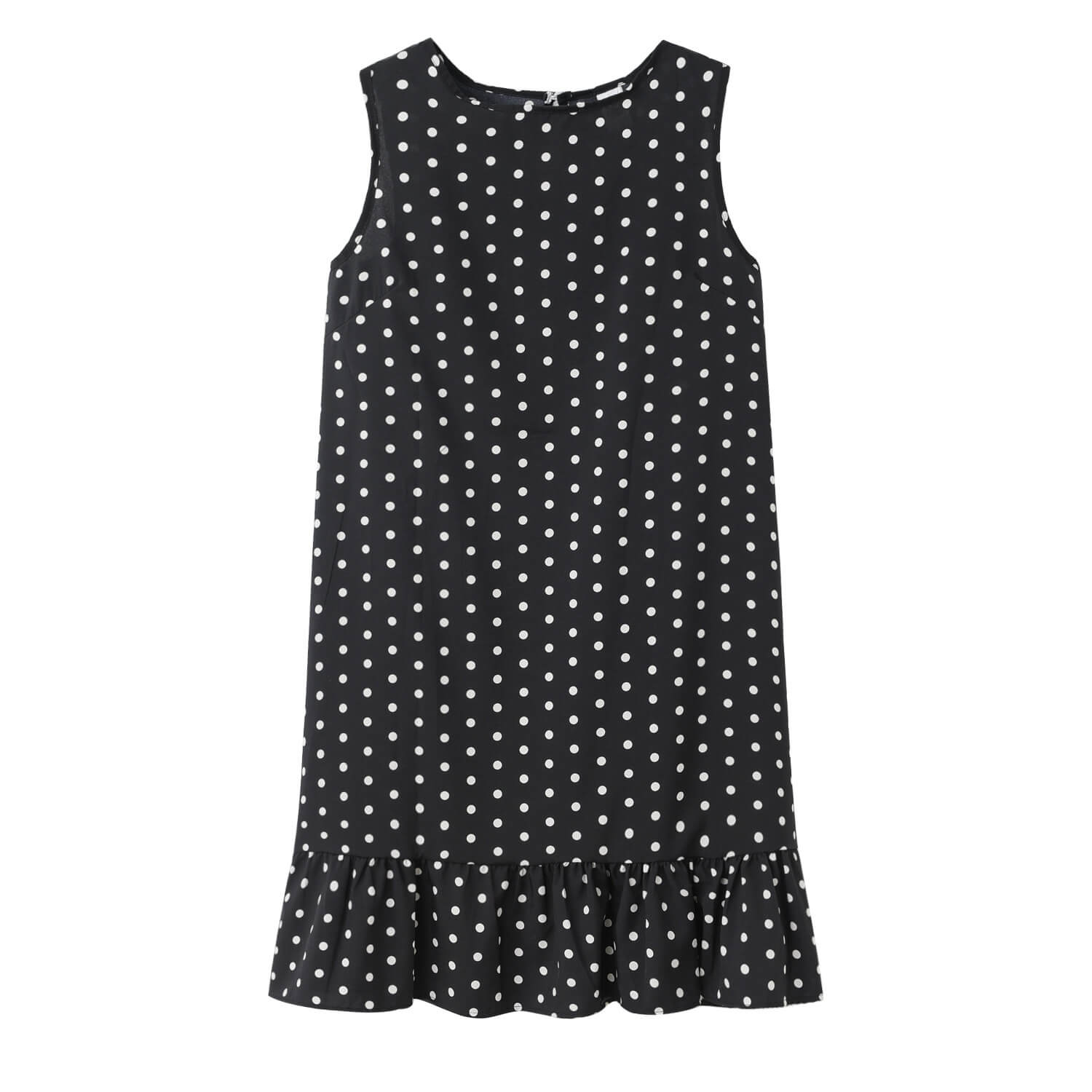 - Package includes: 1 x Round neck sleeveless polka dot loose big hem ruffle dress