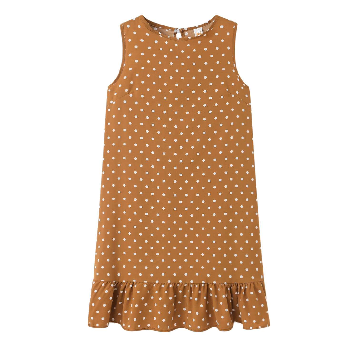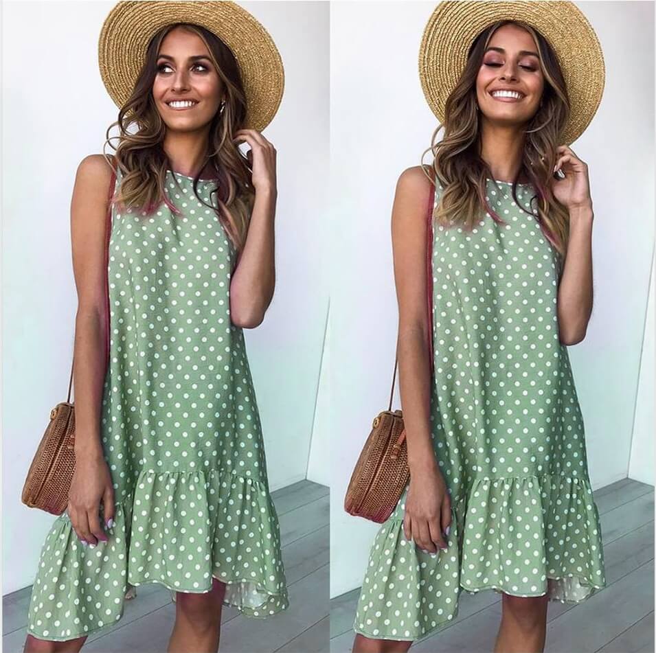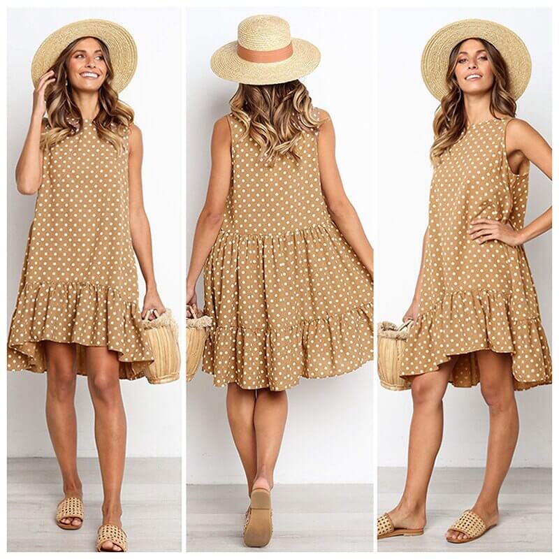 - Package includes: 1 x Round neck sleeveless polka dot loose big hem ruffle dress