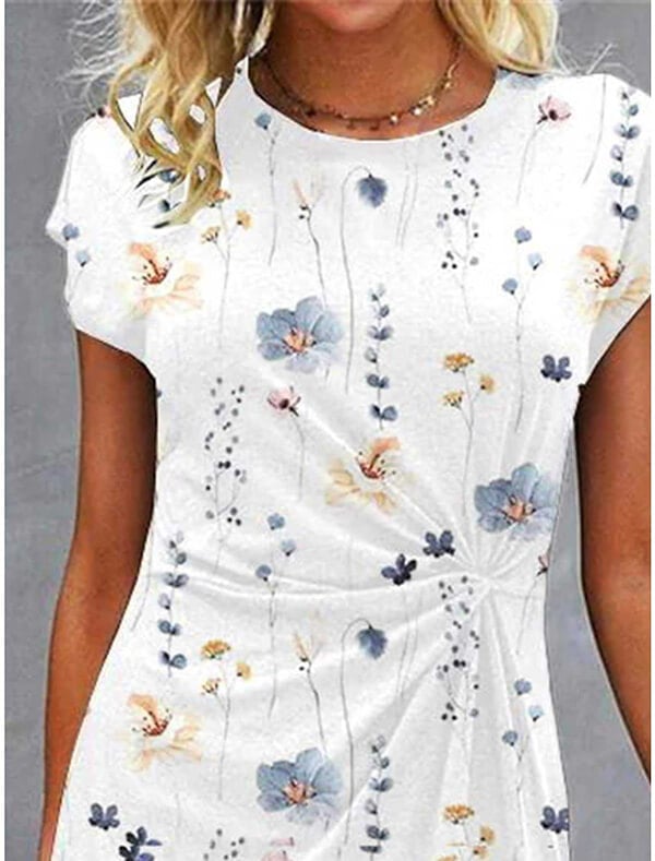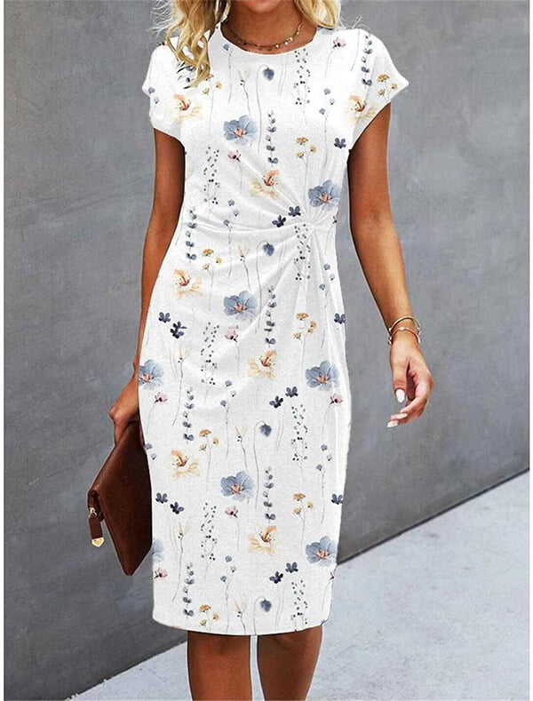 Summer scenery - women's special sexy pumping pleated short-sleeved dress