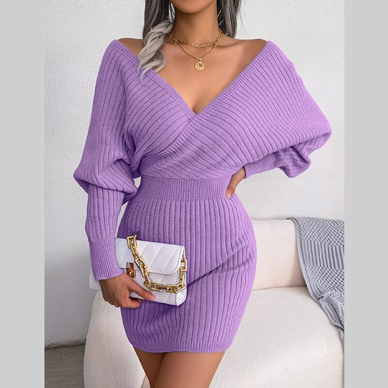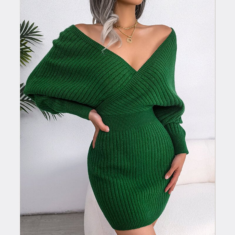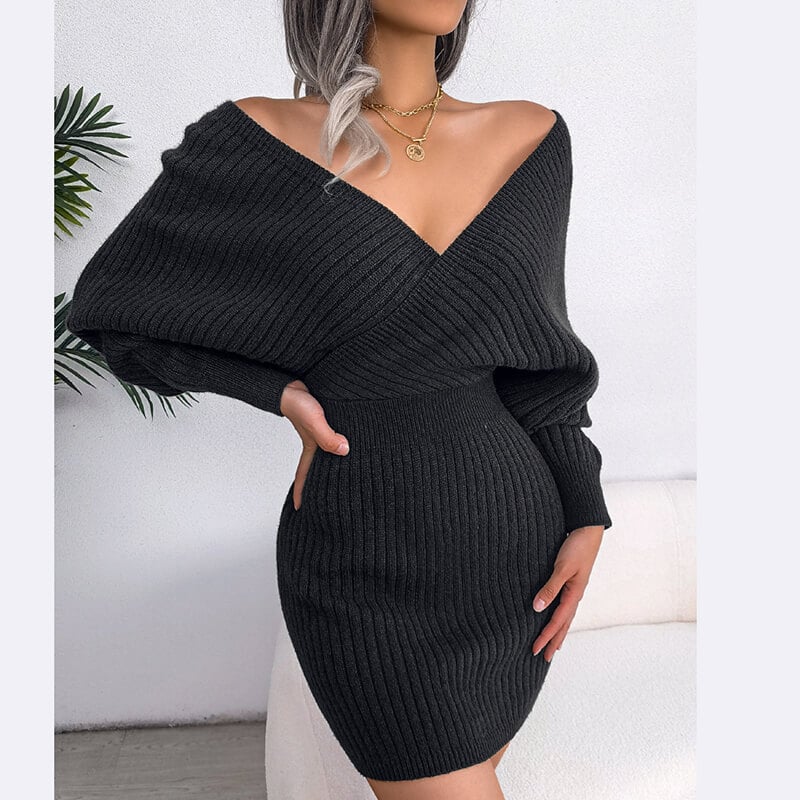 - Package includes:V-Neck Bat Dress Hip Wrap Dress Woolen Dress*1pc