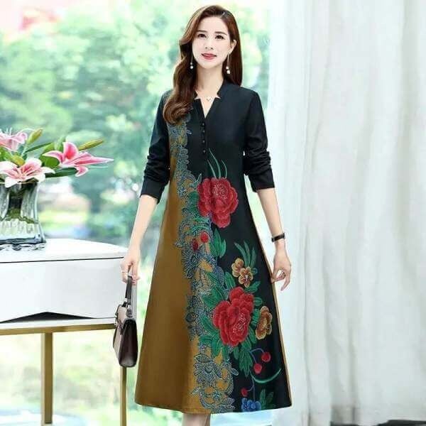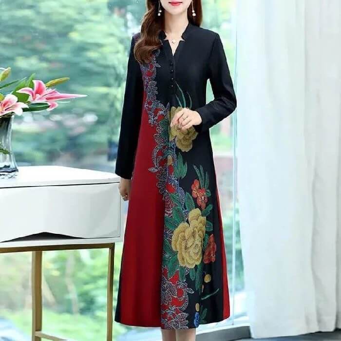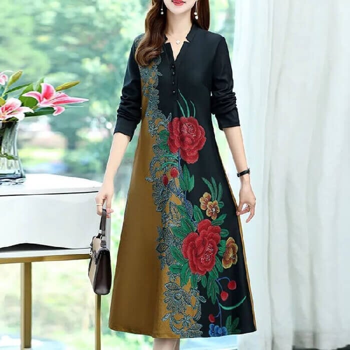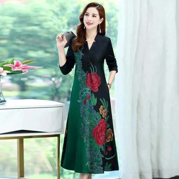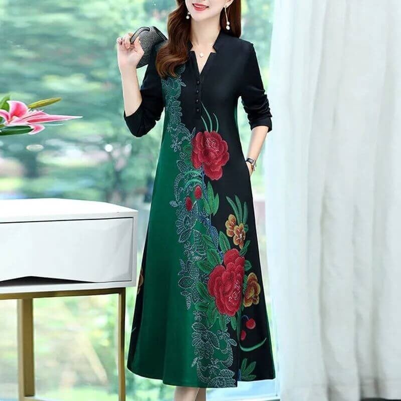 - Women's floral dress with side pockets. Long hem, covering more skin, not feeling cold in bad weather, suitable for more seasons