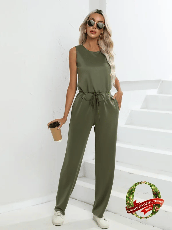 This sleeveless jumpsuit is made of lightweight, luxuriously soft and ultra-drapey spacer fabric for total comfort and flattering, silky to the skin and ready to take you anywhere.