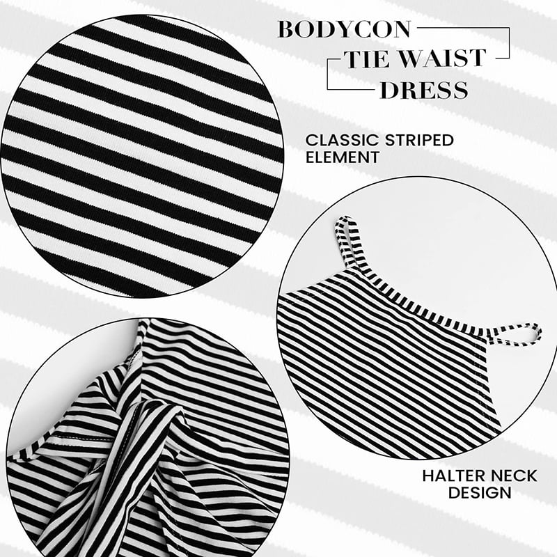 - Design: Sleeveless Halter Neck T Shirt Dress with Tie Waist Wrap Front